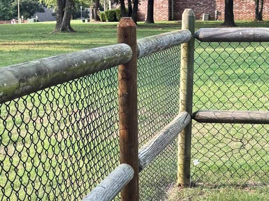 Our round rail fences bring the charm of Owasso, Oklahoma properties to life, with beautiful pine materials and optional chain link wire and post protectors for added security.